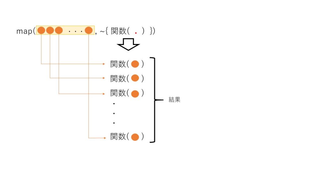 こんな関数があるとすると、次の書き方はすべて同じ結果になります。(スペースの都合、map_chrとしていますが、通常のmapでも同じです)