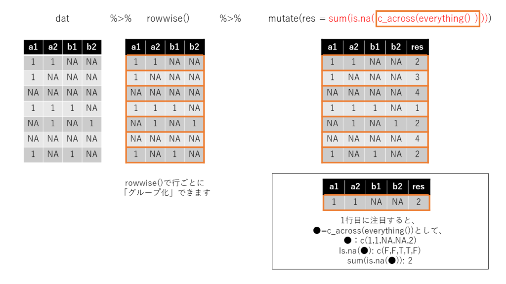 rowwiseとc_acrossを利用して行方向でNAを除去する