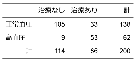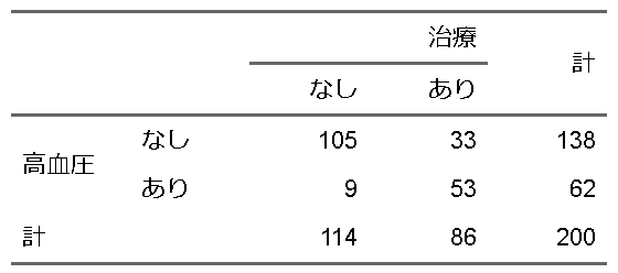 ここまでの知識を利用して、私の本業(産業保健の実務)でよくありそうな表を作成してみましょう。次のような健康診断のデータがあったとして、2×2表を見出しをつけて作成していきます。